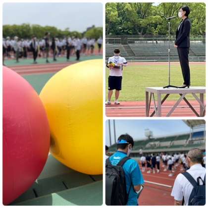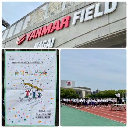午前10時より、長居公園内のヤンマーフィールド長居で「第65回合同運動会」が始まりました。開会式に続いて準備運動、競技と進みました。大淀中学校サポートルーム12名はとても活躍しています。フレーフレー大淀中学校!