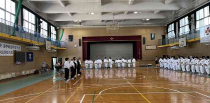 今日、本校は少林寺拳法部の試合会場校です。本校の生徒たちも参加しています。