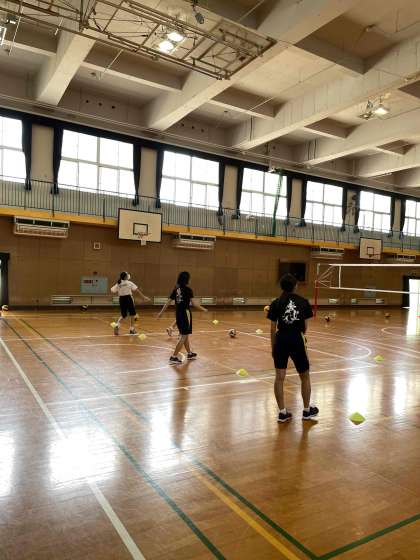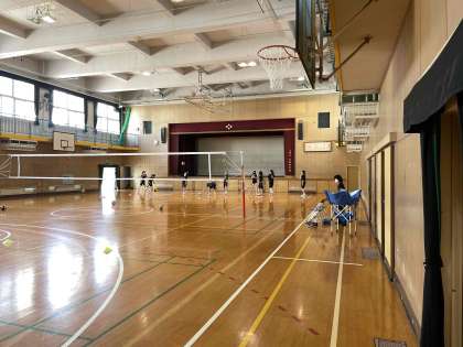 毎週火曜日の朝は、バレー部が体育館の全面を使えるため、練習をしています。生徒たちは、朝早くから、元気よくプレーしています。