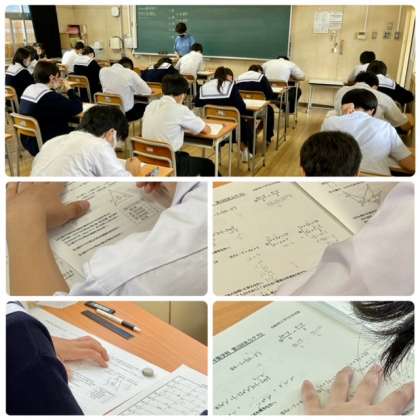3年生は実力テスト(第1回)に挑戦しています。本格的な受験に向けて、実力テストが実施されています。準備万端でテストに臨んでいる生徒、十分な準備ができていない生徒の差が気になっています。最後までベストを尽くしてください。