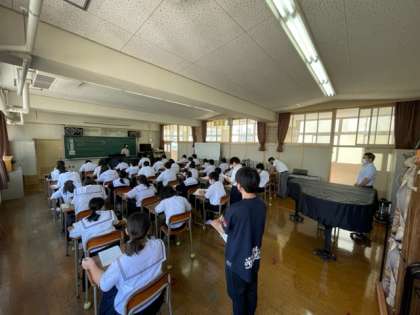 今日は1年1組で豊田先生の音楽科研究授業を行いました。大阪市教育センターからスクールアドバイザーの太田先生に参観に来ていただきました。