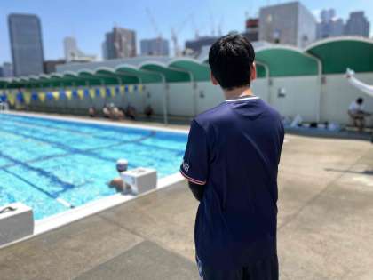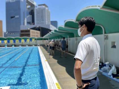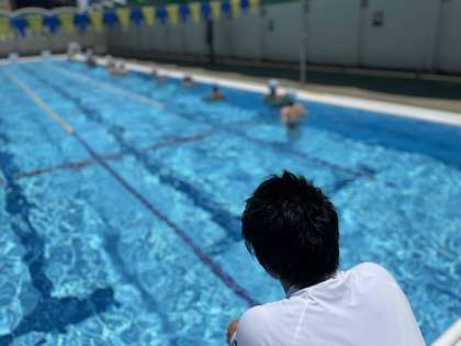 授業では、バタフライのキックの練習をおこなっていました。たくさんの先生も参観されてました。