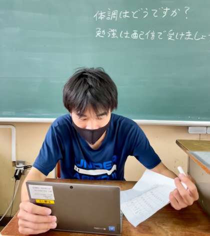 生徒の学びを止めないために、リモートで授業を配信します。今朝も朝の学活をリモートで行いました。