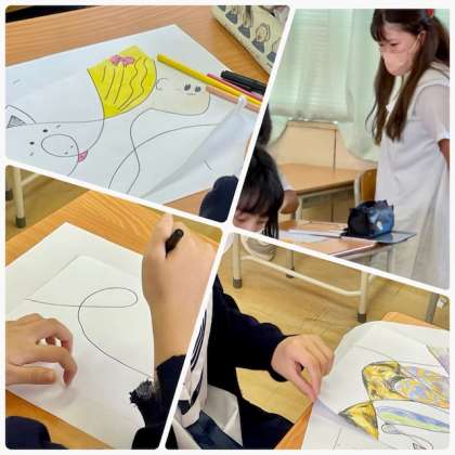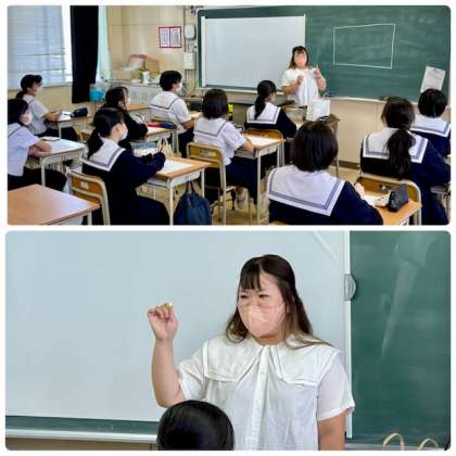 講師の先生からは、大淀中学校の生徒は、自由な発想で描くことができています。男子も素晴らしい、もし女子なら是非本校を目指してほしいですと話されました。