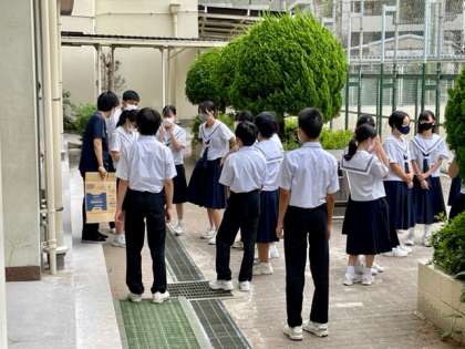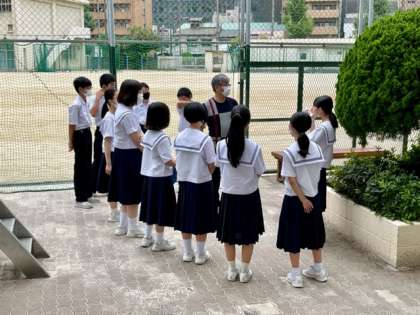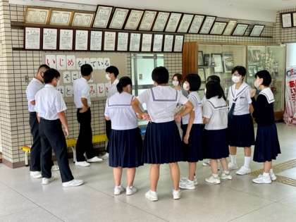 毎週金曜日の朝は、早朝清掃です。各学年、当番にあたっている生徒が集合しました。
