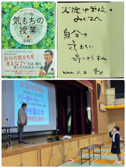腰塚勇人さんから、「気持ちの授業」の図書を頂戴しました。サインも書いていただきました。図書館で生徒の皆さんに読んでもらおうと思います。