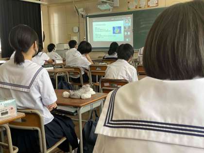 講師の助産師さんには、病院からリモートにて、妊婦さんからのお話、出産の様子、赤ちゃんの心音等、貴重なお話をしてもらいました。