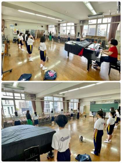 体育館、グラウンド、教室内で部活動に汗を流しています。夏休みに大会や発表会を控えています。楽しみです。