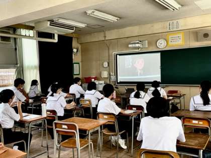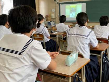 今日は二年生の登校日です。それぞれの教室で、広島・長崎に投下された原子爆弾について学んでいます。