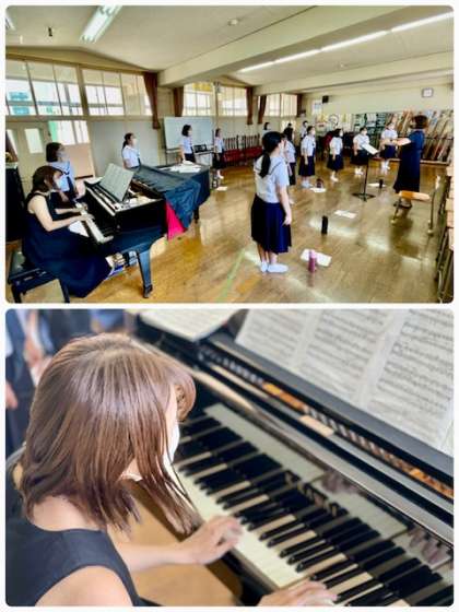 素晴らしい歌声が学校中に広がり、暑い中ですが爽やかな風が吹くようです。