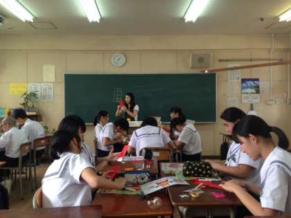 写真左が「アニメ・アート入門」、右が「保育士入門」の講座(ともに宣真高等学校)の様子です。