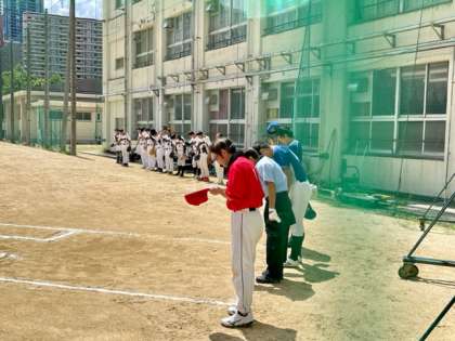 2回戦が始まりました。対戦相手は豊崎中学校・豊崎本庄小学校合同チームです。