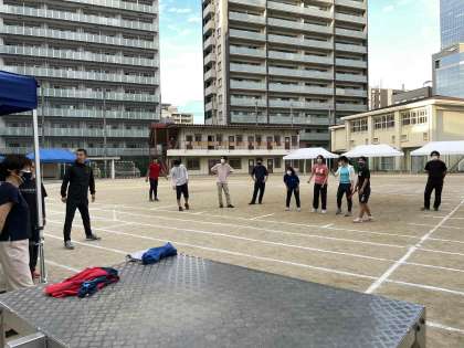 実は、体育大会の前日の放課後、先生たちが部活動リレーに向けて、練習をしました。生徒たちの喜ぶ顔が見たいので、一生懸命に取り組みました。
