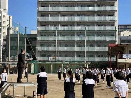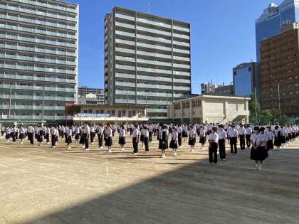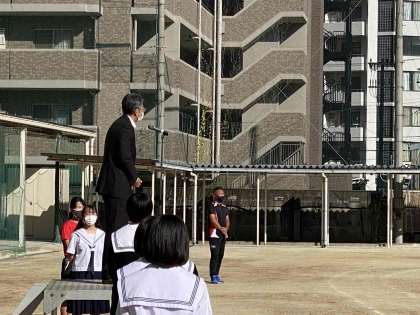 本日の全校集会は、前田区長のお話、水泳部と少林寺拳法部の表彰、校長先生のお話と続きました。