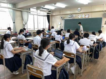 2限、2年1組、美術の授業で教員同士の相互授業参観をおこないました。