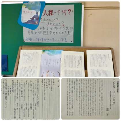 今日は、全国中学生人権作文コンテストの冊子「種をまこう」を紹介してくださっていました。図書館ではこの冊子を閲覧したり、配布したりしてくれています。ぜひ読んでください。
