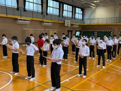 体育館では、男子パートの練習がはじまりました。男子の歌声が運動場を伝って校舎内に響きます。これから磨きをかけて文化祭では素晴らしい合唱を期待しています。