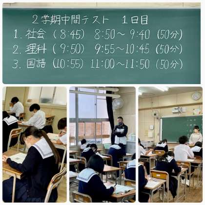 本日より2学期中間テストが始まりました。日頃の学習の成果をしっかり出してほしいと思います。