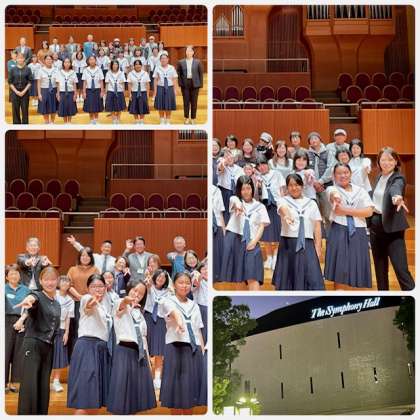昨夜(10月18日火曜日)17時より、ザ・シンフォニーホールで「2022ゆめキタ音楽フェスティバル」が開催されました。大淀中学校合唱部13名が澄んだ歌声をホールいっぱいに響かせました。演奏曲は「みえないはばたき」「青いベンチ」「虹」「RPG」の4曲です。