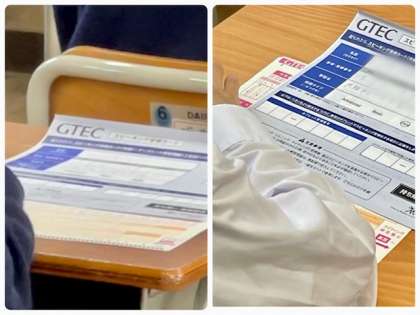 今日3年生は、大阪市英語力調査を受験します。リーディングテスト、ライティングテストに加えてタブレットPCを使ってスピーキングテストを行います。
