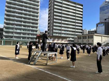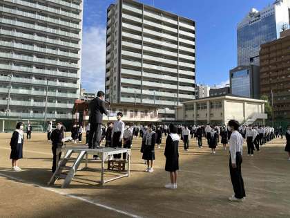 学級委員の認証式です。代表して各学年の2組の学級委員長が認証状を受けとりました。