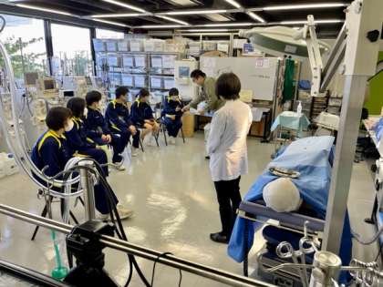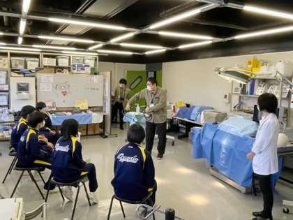 2年職業体験2日目の様子です。大阪医専では、内視鏡手術のシュミレーションを体験させていただきました。