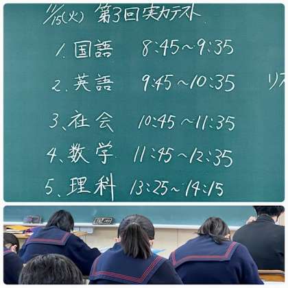 3年生は実力テストに取り組んでいます。先週、進路懇談がありました。いよいよ受験本番です。最後までしっかり力を出してください。