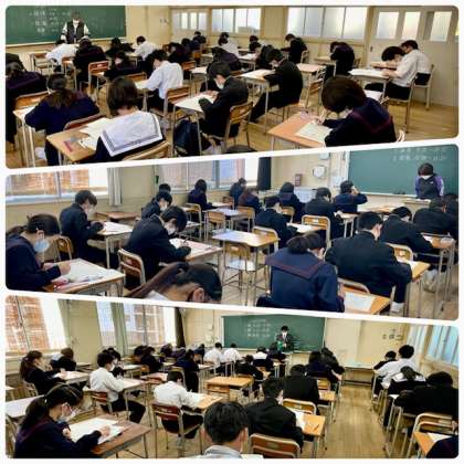 二学期末テストも3日目を迎えました。写真は本日3時間目、3日間の最後のテストを受けている様子です。たいへんよくがんばりました。