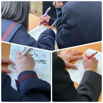 4時間目、山本先生の研究授業の前に3年2組の教室に行くと、気分転換している生徒に混じって、次の英語の小テストの勉強をしている生徒学習見られました。楽しい雰囲気の中で熱心に取り組んでいる姿は素晴らしいと思います。