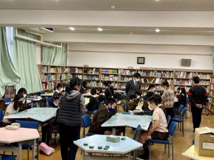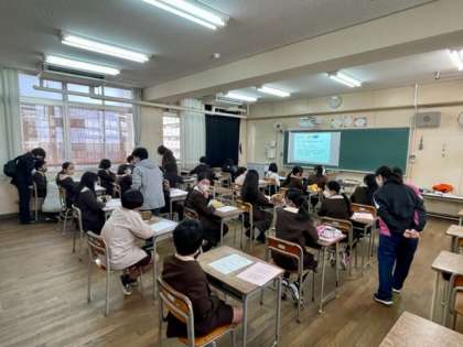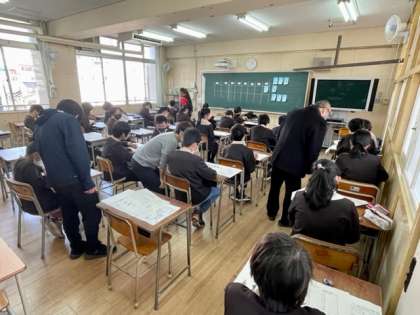 模擬授業が始まりました。写真上から国語、英語、社会の模擬授業を体験しています。