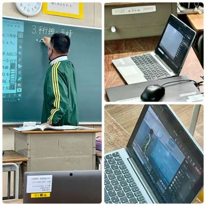 大淀中学校では、学習者用端末(ひとり1台ノートパソコン)を常時持ち帰っています。新型コロナウイルス感染症やインフルエンザはじめ、学校に登校できない時でも各家庭で授業を見ることができます。本日、午前中に行った2人の先生の研究授業も家庭で視聴してくれていました。