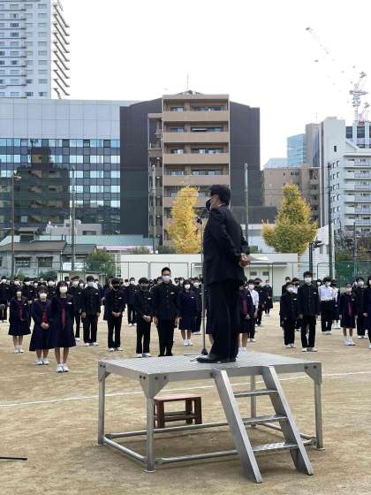 生徒会長が12月10日の人権デーを答えてくれました。人権週間での校長先生の講話では、SNSによる誹謗中傷(ひぼうちゅうしよう)等のお話やワールドカップのサッカーのお話等をしていただきました。