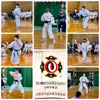 少林寺拳法部が近畿大会に出場しました。単独演舞、組演舞、団体演舞に出場しました。競技の様子はとても熱が入って、日ごろ学級で見る表情と打って変わって、凛々しく気迫がみなぎっていました。