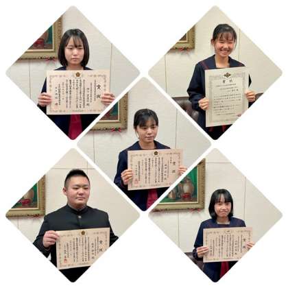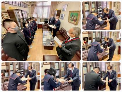 本日、午後1時より校長室で、全国納税貯蓄組合連合会および国税庁が募集した、中学生の「税についての作文」の表彰式が行われました。本校、3年生5名の生徒が表彰を受けました。誇らしいですね。