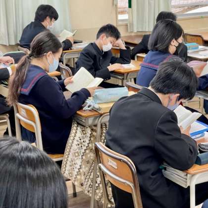 始業から、短学活、授業の間は「朝の読書」を行なっています。読書が習慣になることはとても良いことです。