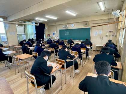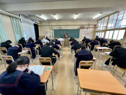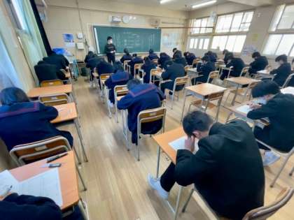 3年生は、学年末テスト2日目を迎えました。写真は2時間目数学テストの様子です。