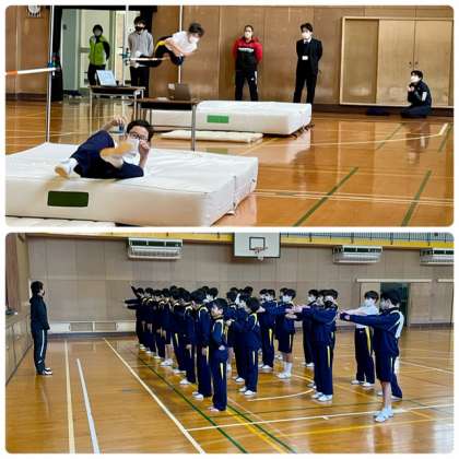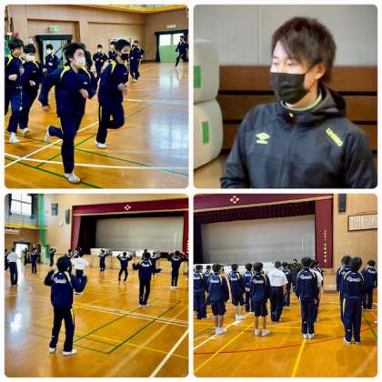 4時間目、1年2・3組の男子体育で梅津先生が高跳びの研究授業を行いました。教育委員会学力向上サポーターの太田先生はじめ、沢山の先生方が参観してくださいました。