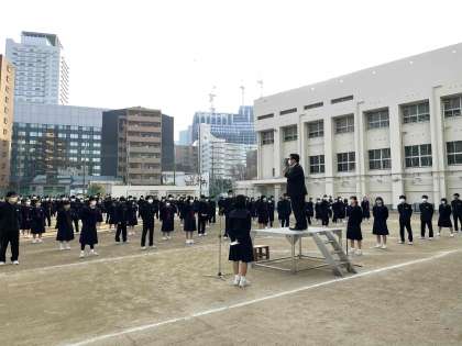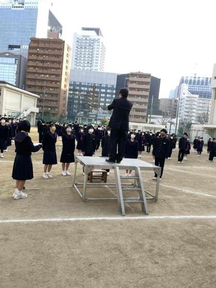 いよいよ、3年生の私学入試、校長先生の高校入試等お話され、いつも通りの平常心で受験に望むよう応援されていました。