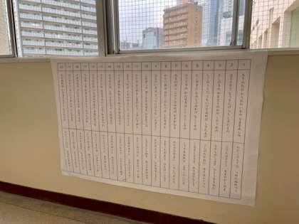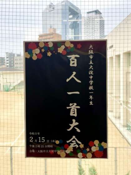 1年生は、2月15日に「百人一首大会」が予定されています。廊下には上の句と下の句の一覧が掲示されています。