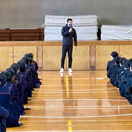 表彰式に続いて、進藤先生からお話がありました。今週、1年生も「百人一首大会」がありました。1年生も頑張っていました。2年生はさすが中学校で1年間過ごしたことも見られる立派な姿でした。学校で学ぶことについて、その意味を説いてくださいました。
