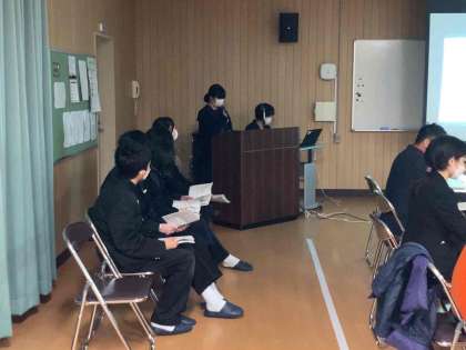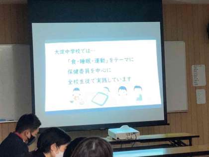 本年度の取り組みとして、給食の残食、生活習慣や起床時間、スマホ依存等について、生徒からの報告があり、議論しました。非常に分かりやすい発表もありました。