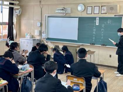 2年生国語の学習です。文豪 太宰 治さんの「走れメロス」を学習しています。