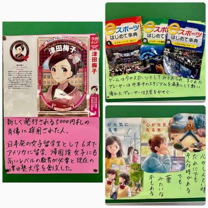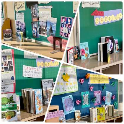 学校内のいたるところに、読書について紹介するポスターやディスプレイがされています。