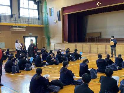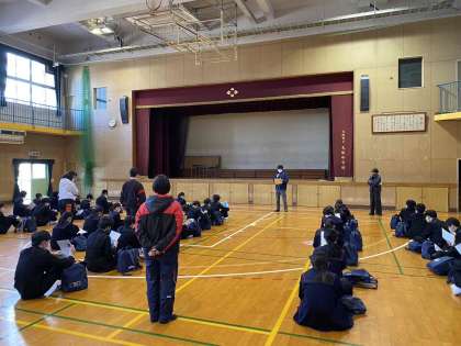 3限終了後、3年生の公立入試(一般選抜)の出願前に際して、諸連絡です。該当の生徒たちは、体育館に集合しています。