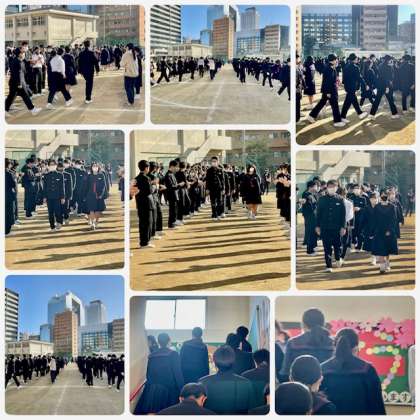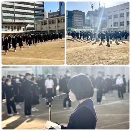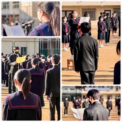 第76期生の卒業式を1週間後に控え、卒業式当日は全校生徒が参加できないため、今朝の全校集会は生徒会主催の「卒業生を送る会」を行いました。