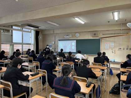 校長先生の講話では、明日の卒業式にマスクを外せる事、先日放送されたNHKの南海トラフドラマでのポイント等のお話がありました。