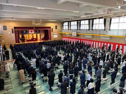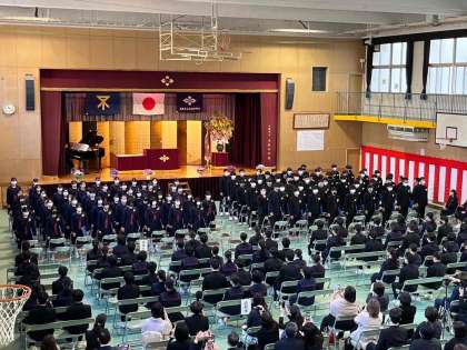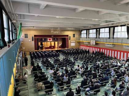 卒業の歌「たからもの」、「蛍の光」斉唱