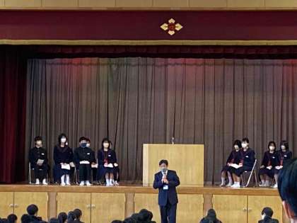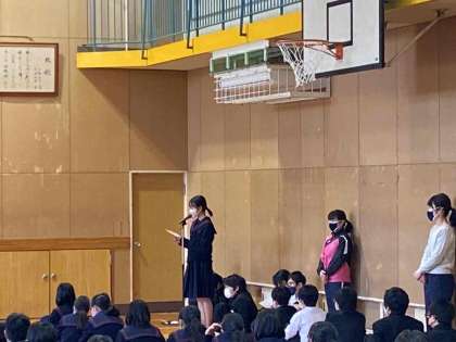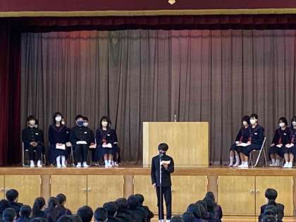 生徒会から司会の挨拶、校長先生のお話、選挙管理委員長の挨拶、諸注意についてと始まりました。