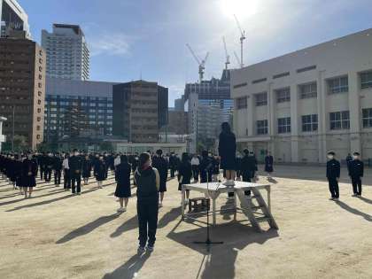生徒会会長から挨拶のあと、校長先生からのお話です。