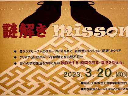1年生は午後から「謎解きmission」(今年最後の学年行事)に取り組んでいます。
